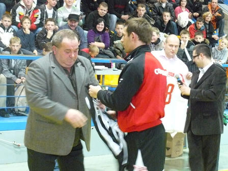 Prawdziwa wojnę stoczono o koszulkę mieszkającego w Skawinie Łukasza Skrzyńskiego, który z wielkim talentem sam poprowadził ten fragment licytacji. - Prezes Mogilan Pan Andrzej Karski bardzo się "napiął" na moją koszulkę. Gdy tylko ktoś podbił stawkę o 100 złotych to on dawał o 400 zł więcej - cieszył się Skrzynia bo za jego koszulkę zapłacono rekordową kwotę aż 2.100 złotych!. - Pan Karski też jest od lat z Krzyśkiem na dobre i na złe, tak samo jak Pan Duda. Gdy takich ludzi spotyka się na swojej dro dze, to jest wielka szansa na wygraną z tą ciężką chorobą - dodaje Łukasz Skrzyński.